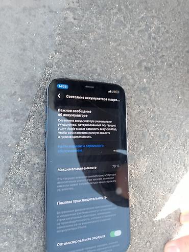 - На фото из меню: состояние аккумулятора — максимальная ёмкость 79%, отображается уведомление о необходимости обслуживания батареи.