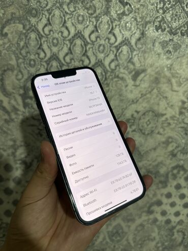 IPhone 13, 128 ГБ, цвет Midnight (тёмно‑синий/чёрный). Характеристики и детали: - Память: 128 ГБ (доступно ~93 ГБ на момент фото). - Экран: 6.1" Super Retina XDR, вырез‑«чёлка». - Камеры: двойной ...