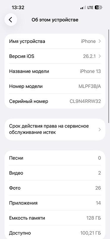 - Модель: iPhone 13 (номер модели MLPF3B/A)