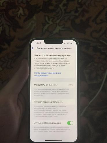 - Аккумулятор: в меню «Состояние аккумулятора» отображается максимальная ёмкость 72% и уведомление о необходимости сервисной замены для восстановления полной ёмкости