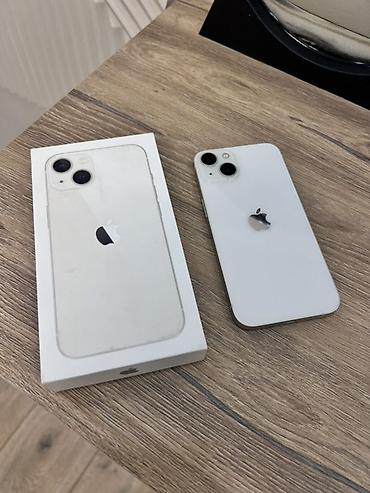 • IPhone 13, Б/у, 128 ГБ, Белый, Зарядное устройство, Защитное стекло, Чехол, 70 %