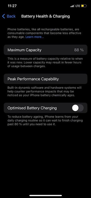 - Аккумулятор: максимальная ёмкость 88% (скрин в галерее)