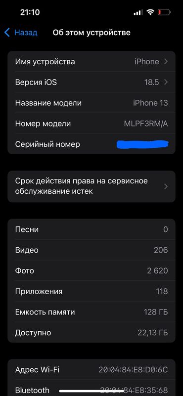 Продам iPhone 13 Pro Max 512 Gb «Графит» iOS 18.3.2 (22D82). Телефон личного пользования, в хорошем состоянии. Емкость батареи 79%. Не вскрывался, в воде не плавал.
