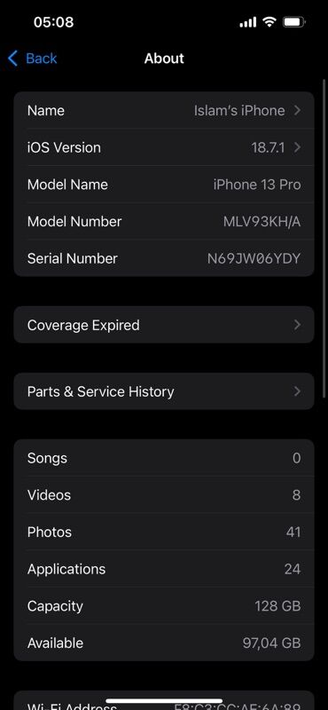 IPhone 13 Pro, 256 ГБ, графитовый.. - Модель: iPhone 13 Pro (Model Number: MLRG3LL/A по скриншоту “Об этом устройстве”). - Память: 256 ГБ (доступно около 240,53 ГБ). - Цвет: графитовый. - Экран: ...