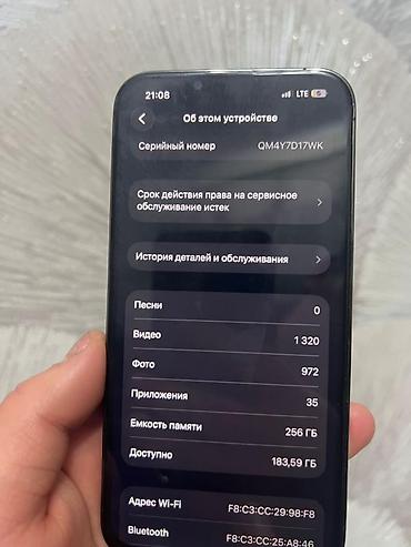- Память: 256 ГБ (доступно около 183,6 ГБ — см. скрин)