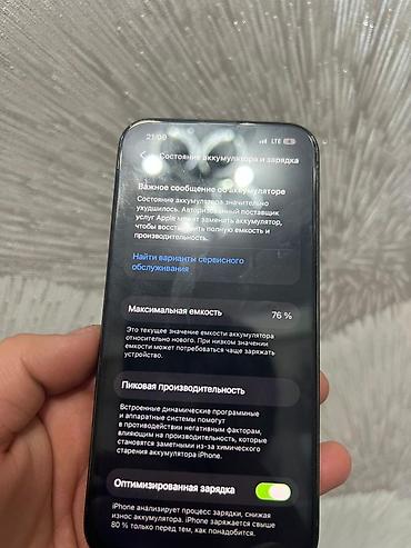 - Состояние аккумулятора по системному меню: максимальная ёмкость 76%, включена «Оптимизированная зарядка»