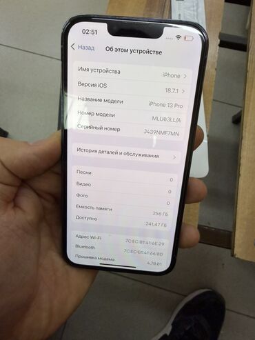 IPhone 13 Pro, 256 ГБ - Модель: iPhone 13 Pro (номер модели MLU3LL/A) - Цвет корпуса: светло‑голубой (Sierra Blue) - Память: 256 ГБ, доступно ~136,6 ГБ - iOS: 18.0.1 - Связь: LTE, Wi‑Fi, Bluetooth...
