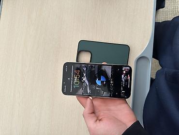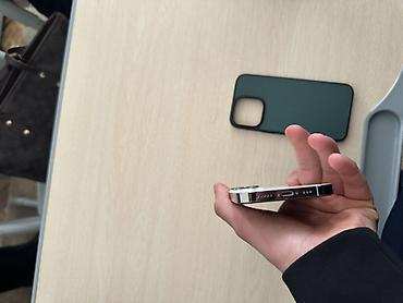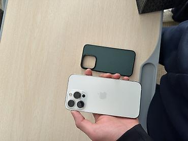 IPhone 13 Pro, цвет «серебристый» (white/silver). Диагональ 6.1", дисплей Super Retina XDR с частотой 120 Гц (ProMotion). Тройная основная камера с LiDAR: широкоугольная, сверхширокоугольная и телефото; поддержка ночного режима, ProRAW/ProRes, оптическая стабилизация. Фронтальная камера TrueDepth с Face ID (Dynamic Island отсутствует — это серия 13 Pro). Корпус из нержавеющей стали с плоскими гранями, стекло Ceramic Shield. Разъём Lightning, поддержка MagSafe и беспроводной зарядки Qi. На фотографиях — комплектуется чехлом-накладкой тёмно‑зелёного цвета. На экране русский интерфейс, есть модуль NFC/Apple Pay, 5G, Wi‑Fi 6, Bluetooth, GPS.
