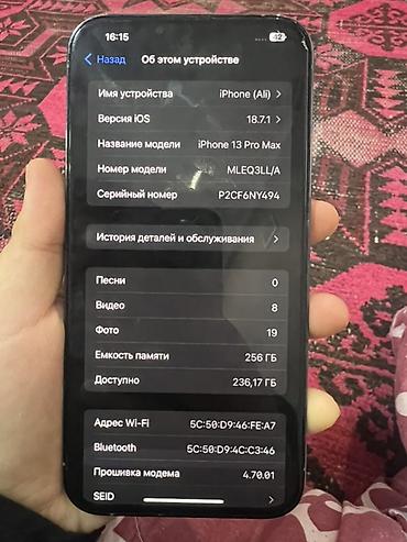 - Модель: iPhone 13 Pro Max (номер модели MLEQ3LL/A)