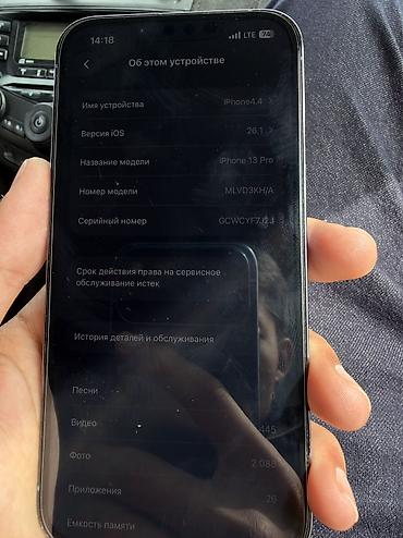IPhone 13 pro max 256 White 🔹Состояние идеал 🔹Полный комплект даже кабель не использованный ☝️Единственное заменили дисплей на ориг ( за 14000 сом ). В остальном 🔋Ёмкость Акб 91% 🔖Баасы 40000 со...