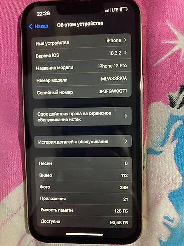 IPhone 13 Pro Max, 128 ГБ - Модель: iPhone 13 Pro Max (номер модели MLLP3RK/A) - Цвет корпуса: графит - Память: 128 ГБ (доступно ~108,92 ГБ на скриншоте) - Дисплей: Super Retina XDR с частотой до...