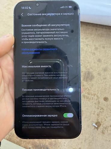 - Аккумулятор: в разделе «Состояние аккумулятора» отображается сообщение о необходимости сервиса; максимальная емкость 78%, включена «Оптимизированная зарядка».