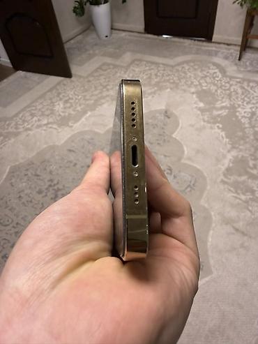 )Смартфон Apple iPhone 13 Pro 256 акб 69% стоит заменить )в золотом цвете с плоскими гранями. Устройство оснащено портом USB-C и решетками динамиков на нижнем торце. На левой грани расположены кнопки регулировки громкости и переключатель режима звука. Дизайн соответствует флагманской линейке Pro Max.