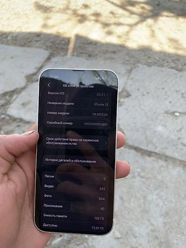 IPhone 13, 128 ГБ, цвет белый (Starlight) Характеристики и детали с устройства: - Модель: iPhone 13 (номер модели MLPQ3HN/A) - Память: 128 ГБ (доступно ~11,45 ГБ на момент фото) - iOS: 16.2 - Экра...