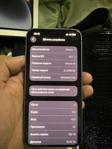 - Модель: iPhone 14 (на экране “Название модели — iPhone 14”, номер модели 3L238KH/A)