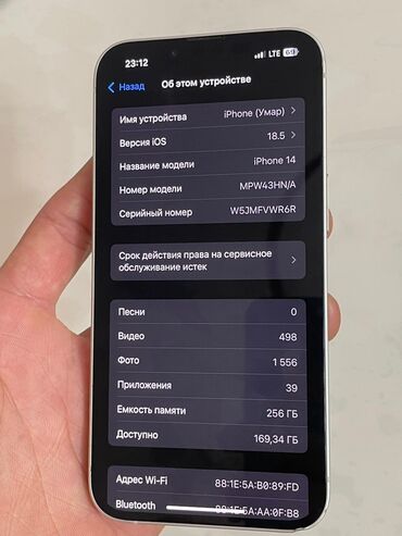 IPhone 14 Pro, 256 ГБ Экран и батарея заменены на оригинал Все Работает отлично 👍 - Модель: iPhone 14 Pro (MQ173J/A) - Память: 256 ГБ, доступно ~239,6 ГБ - Цвет: светлый (серебристый/белый оттен...