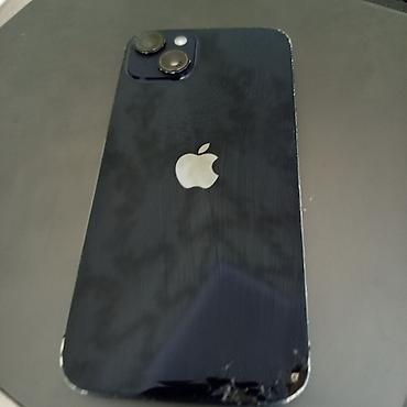 - На фото видны: корпус цвета Midnight с двойным блоком камер; заметные сколы/трещины внизу на стекле задней панели и следы износа по кромкам; модуль камер и вспышка целые по виду