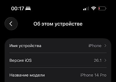 - Модель: iPhone 14 Pro (указано в настройках «Об этом устройстве»)