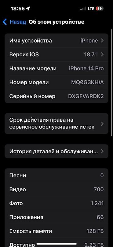 IPhone 14 Pro, модель MQ0G3ZD/A, серийный номер W533K00LQ6. Память 128 ГБ. Характеристики и особенности: - iOS 18.3. - Дисплей Super Retina XDR с Dynamic Island. - Тройная основная камера Pro (ши...