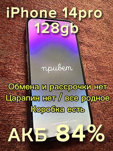 IPhone 14 Pro, Б/у, 128 ГБ, Deep Purple, Коробка, 84 %