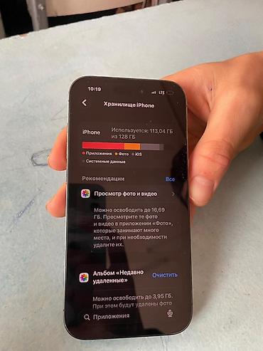 - Память: 128 ГБ (в разделе «Хранилище iPhone» отображается использовано 113,04 ГБ из 128 ГБ).
