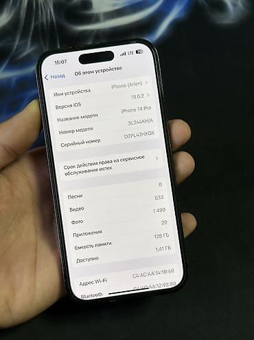 IPhone 14 Pro, Б/у, 128 ГБ, Черный, Защитное стекло, Чехол, 85 %