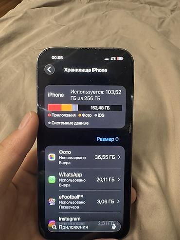 - Память 256 ГБ (на скриншоте «Хранилище iPhone» видно использование 103,52 ГБ).