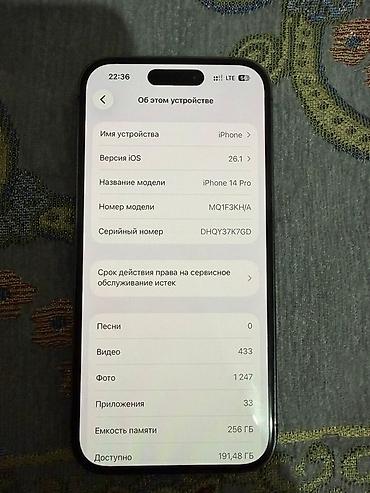 Айфон 14про 256г корейский абалы жакшы АКБ79 тв ачылбаган комплект зарядка чехол
