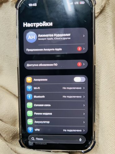 - Аккаунт Apple отображается в настройках, доступно обновление ПО