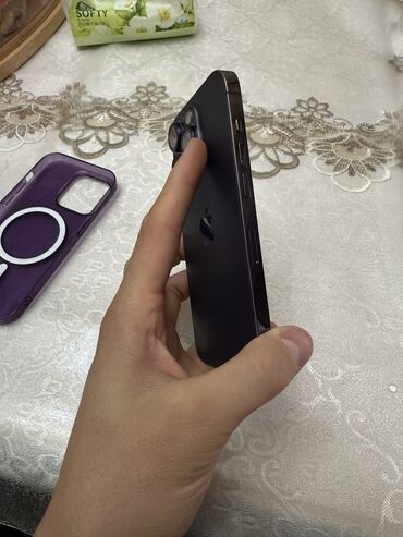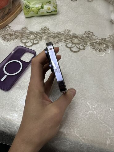 • IPhone 14 Pro Max, Б/у, 256 ГБ, Deep Purple, Зарядное устройство, Защитное стекло, Чехол, 80 %