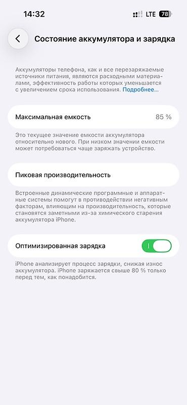 - Оптимизированная зарядка включена