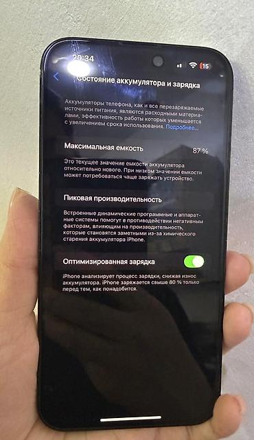 - Аккумулятор: максимальная ёмкость на экране — 87% (см. фото)