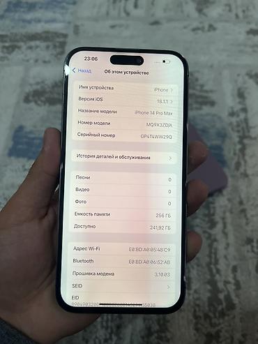 IPhone 14 Pro max, цвет Deep Purple Акб 86% Состояние хорошее Реальным клиентам уступлю - Экран 6.1" Super Retina XDR, OLED, 120 Гц (ProMotion), вырез Dynamic Island. - Корпус из нержавеющей ста...