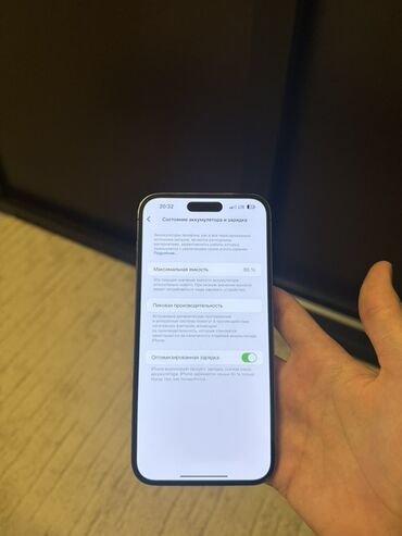 - На фото экрана «Состояние аккумулятора»: максимальная ёмкость 86%.