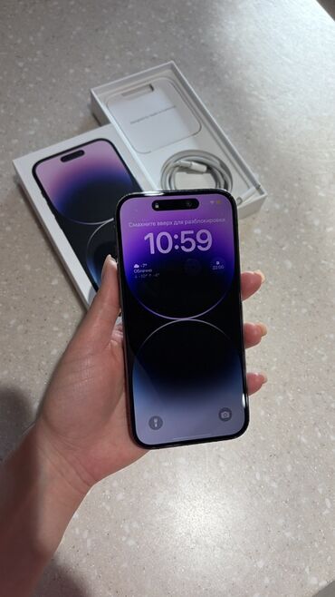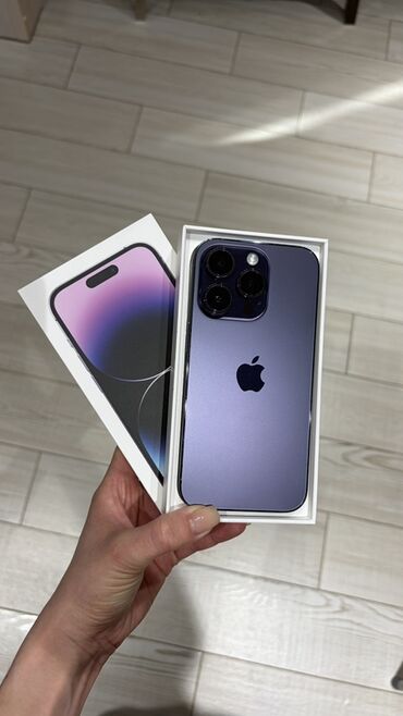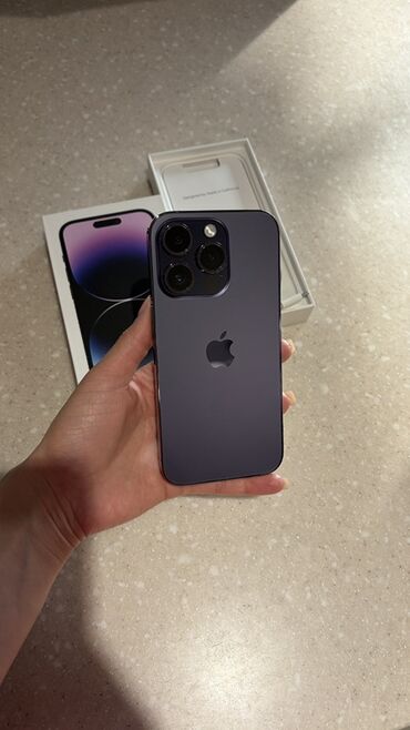 IPhone 14 Pro, цвет Deep Purple (темно‑фиолетовый), 256GB. В комплекте: оригинальная коробка, кабель USB‑C — Lightning, документация.