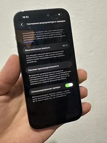 - Аккумулятор: максимальная емкость 99%, включена «Оптимизированная зарядка»