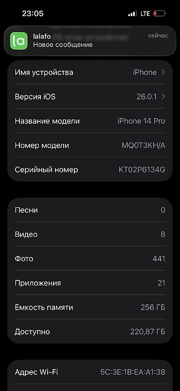 IPhone 14 Pro, Б/у, 256 ГБ, Черный, Кабель, 87 %