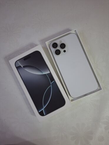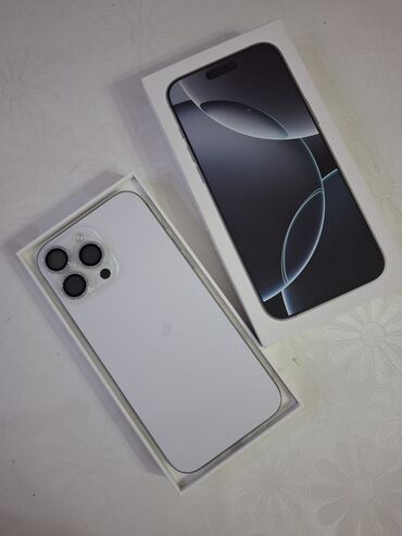 IPhone 16 Pro Max в белом/серебристом цвете, в фирменной коробке. Большой дисплей Super Retina XDR с высокой частотой обновления и Dynamic Island, мощный процессор серии A — всё работает быстро и плавно. Продвинутая система камер с отличным качеством фото и видео, поддержка Face ID и 5G. Премиальный корпус из стекла и металла. Подходит для игр, съёмки и повседневного использования. В комплекте смартфон и оригинальная упаковка.