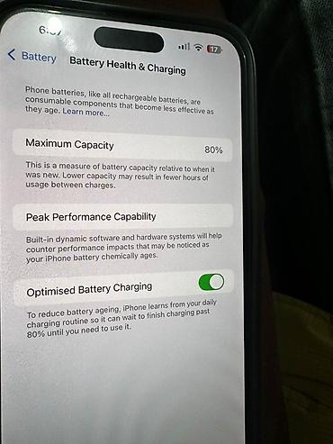 - Батарея: максимальная ёмкость 80%, функция Optimised Battery Charging включена