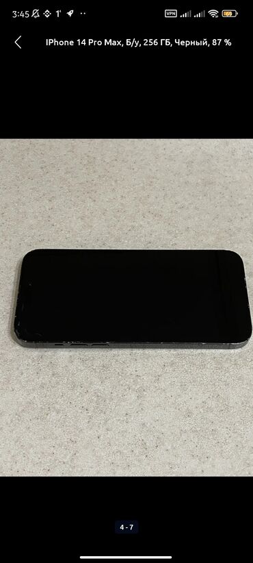 IPhone 14 Pro Max, 256 ГБ, цвет Черный. Все оригинальное экран не менялся но вышла ошибка о замене экрана