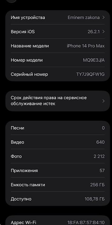 - На устройстве: 640 видео, 2212 фото, 57 приложений (можно удалить при необходимости).