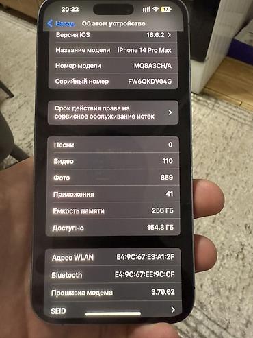- Модель: iPhone 14 Pro Max (название модели в настройках — iPhone 14 Pro Max)