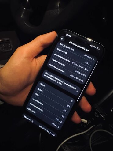 - На скриншотах меню “Об этом устройстве” видно: модель iPhone 14 Pro Max (номер модели MQ8A3ZA/A).