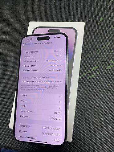 IPhone 14 Pro Max, Б/у, 512 ГБ, Deep Purple, Коробка, 85 %