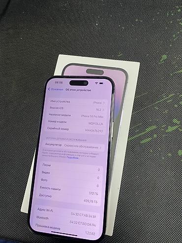 IPhone 14 Pro Max, Б/у, 256 ГБ, Deep Purple, Коробка, 82 %