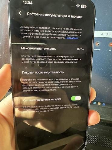 🔺- Аккумулятор: максимальная ёмкость 87% (данные из раздела «Состояние аккумулятора и зарядка»)