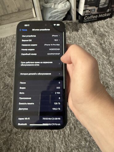 iPhone 14 Pro Max 128 АКБ 85 Состояние отличное, из минусов меняли экран. Работает отлично. 1 сим + есим