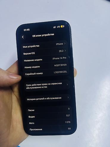 - На экране «Об этом устройстве» указано: iPhone 14 Pro, серийный номер L3Q316K2DL.