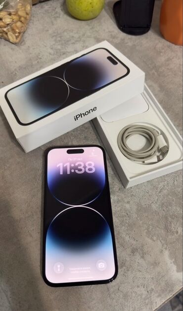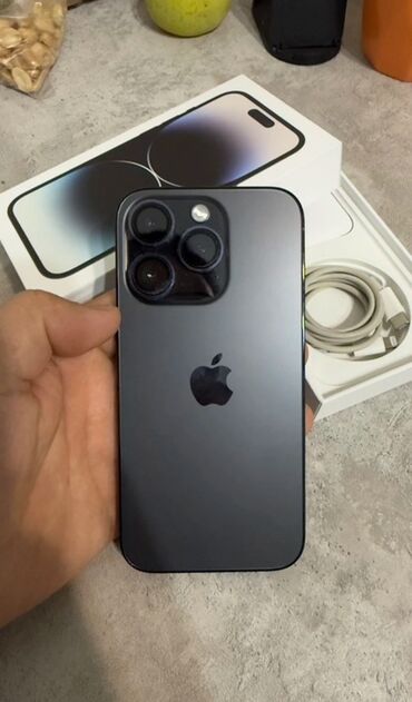 IPhone 14 Pro, Б/у, 128 ГБ, Black Titanium, Защитное стекло, Чехол, Кабель, 87 %
