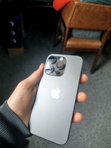 IPhone (линейка Pro), цвет «чёрный титан»/графит. Основные особенности: - Корпус из матового стекла и металла, плоские грани, цвет тёмный. - Тройной модуль основной камеры + лидар/вспышка: широкоу...